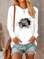 Kadın Uzun Kollu Bisiklet Yaka Baskılı Viskon Bluz