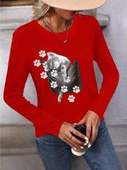 Kadın Uzun Kollu Bisiklet Yaka Desenli Viskon Bluz